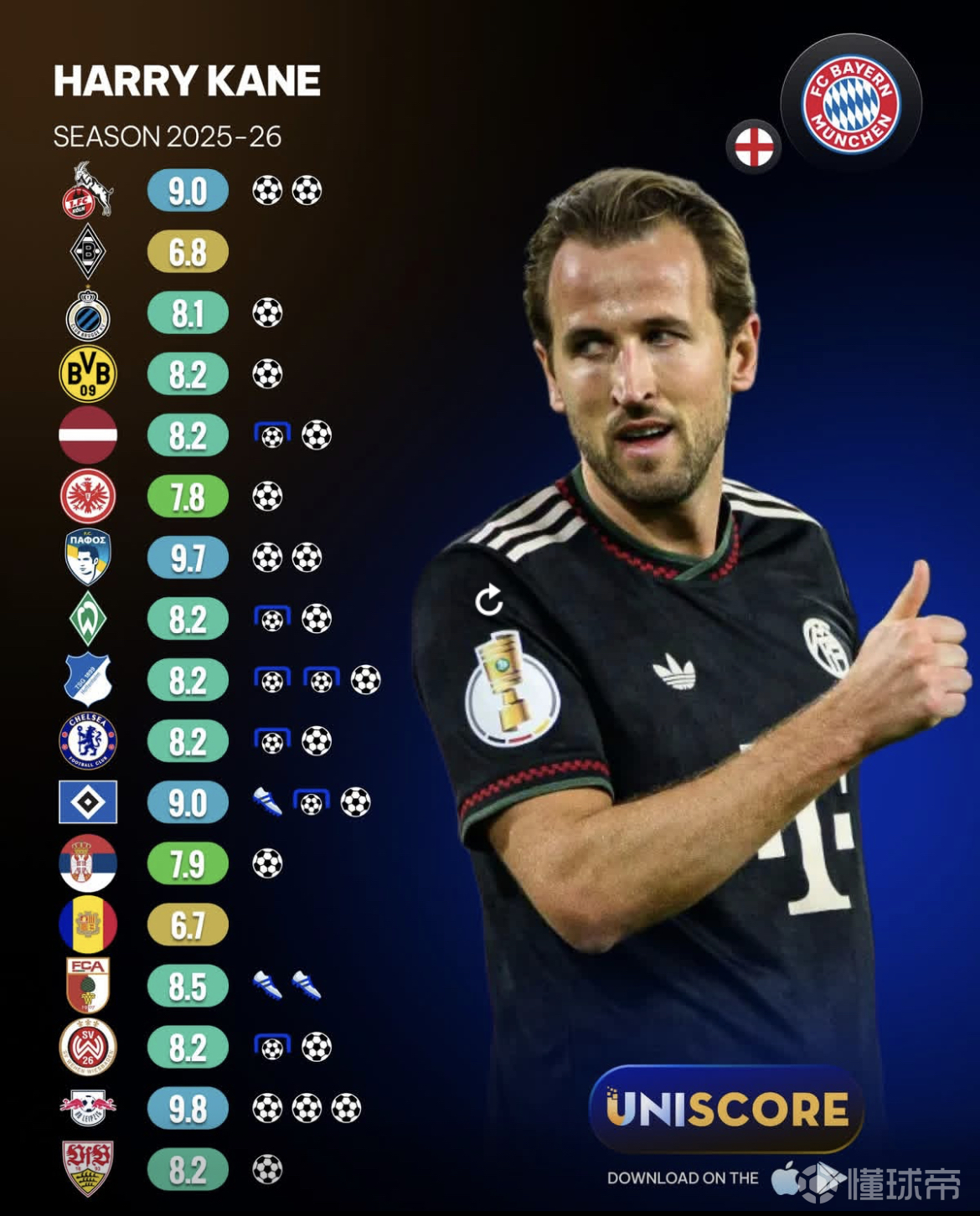 哈里-凯恩本赛季各项赛事仅有两场比赛没有参与进球2025-10-31 15:42:47