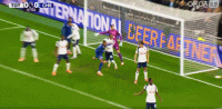 第53分钟,詹姆斯传中,恩佐头球攻门,可惜球稍稍高出横梁