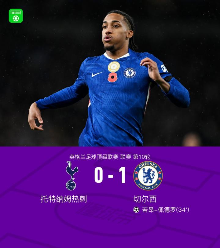 北京时间11月2日,英格兰足球超级联赛第十轮,托特纳姆热刺在温暖的主场迎来了切尔西的挑战。上半场,凯塞多机敏抢断后送出精妙助攻,若昂-佩德罗抓住机会破门得分。下半场尾声,吉滕斯和若昂-佩德罗接连错失扩大比分的绝佳机会。全场比赛结束,切尔西以1-0的比分在客场带走了宝贵的胜利。